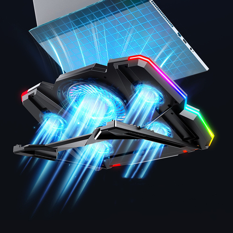 3. Cool RGB lighting effects on both sides of the laptop cooler, various lighting effects can be converted, and you can turn it off by yourself,,a better experience;